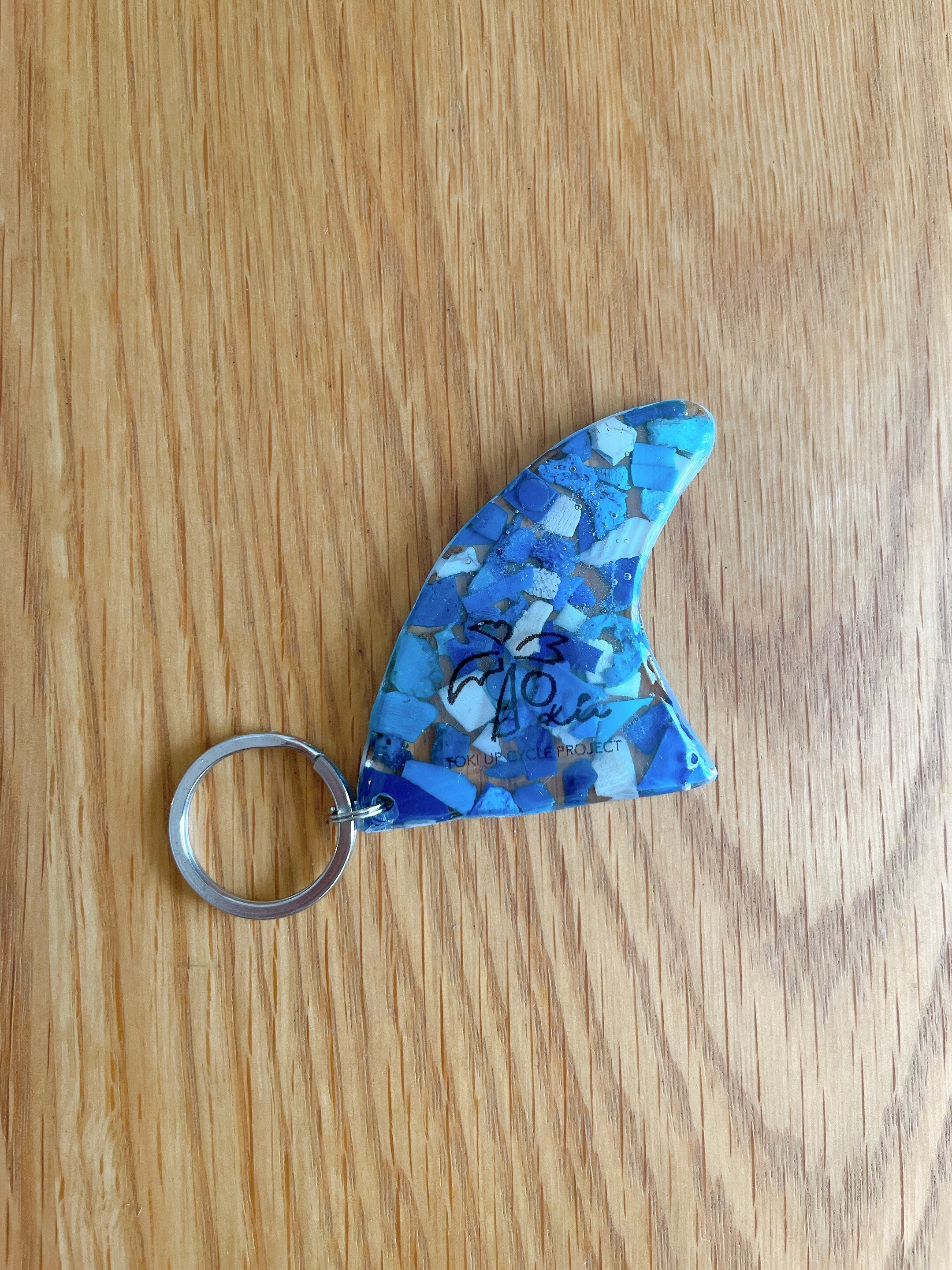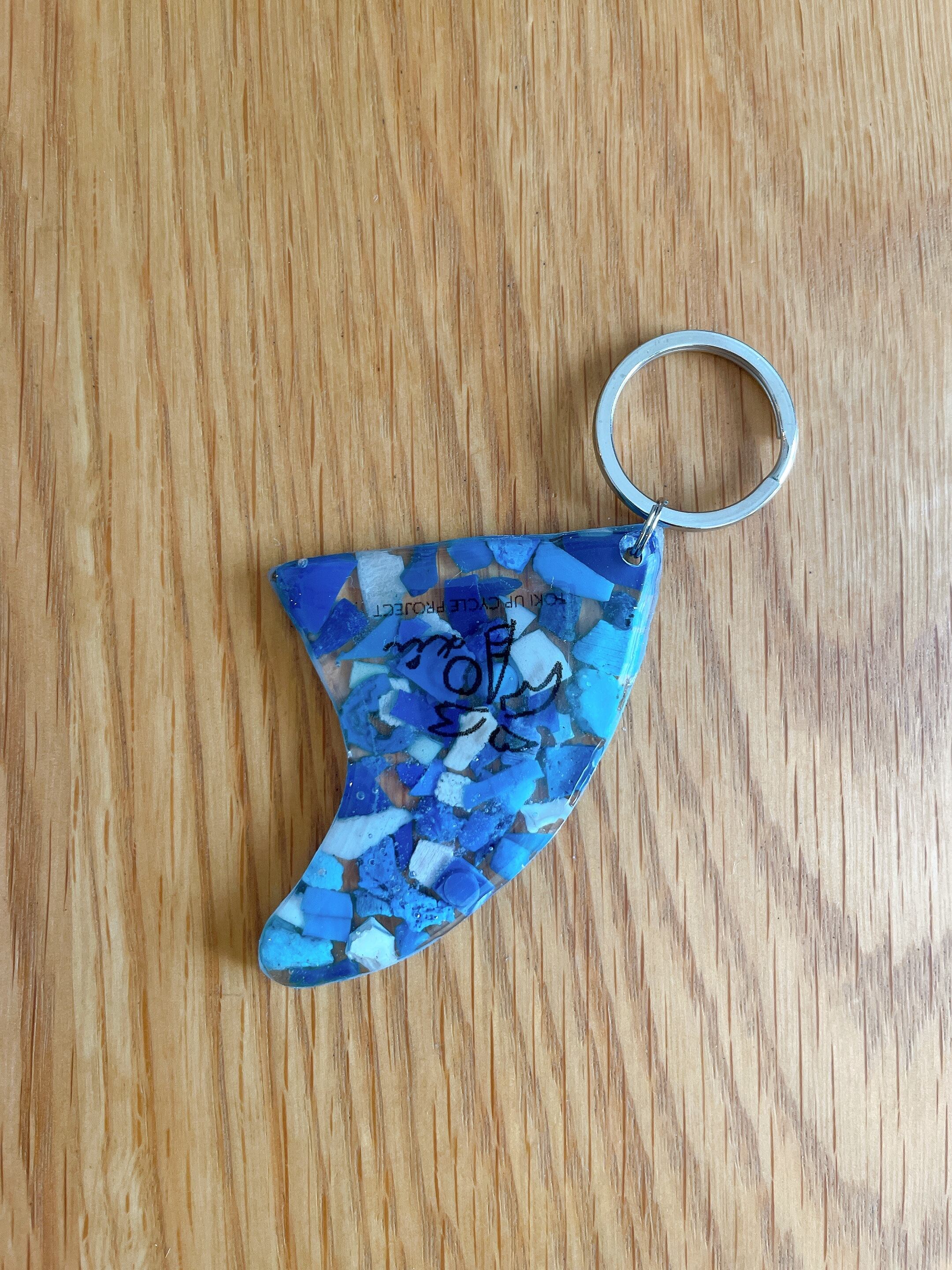 海で拾った海洋プラごみをキーホルダーにアップサイクルしました。