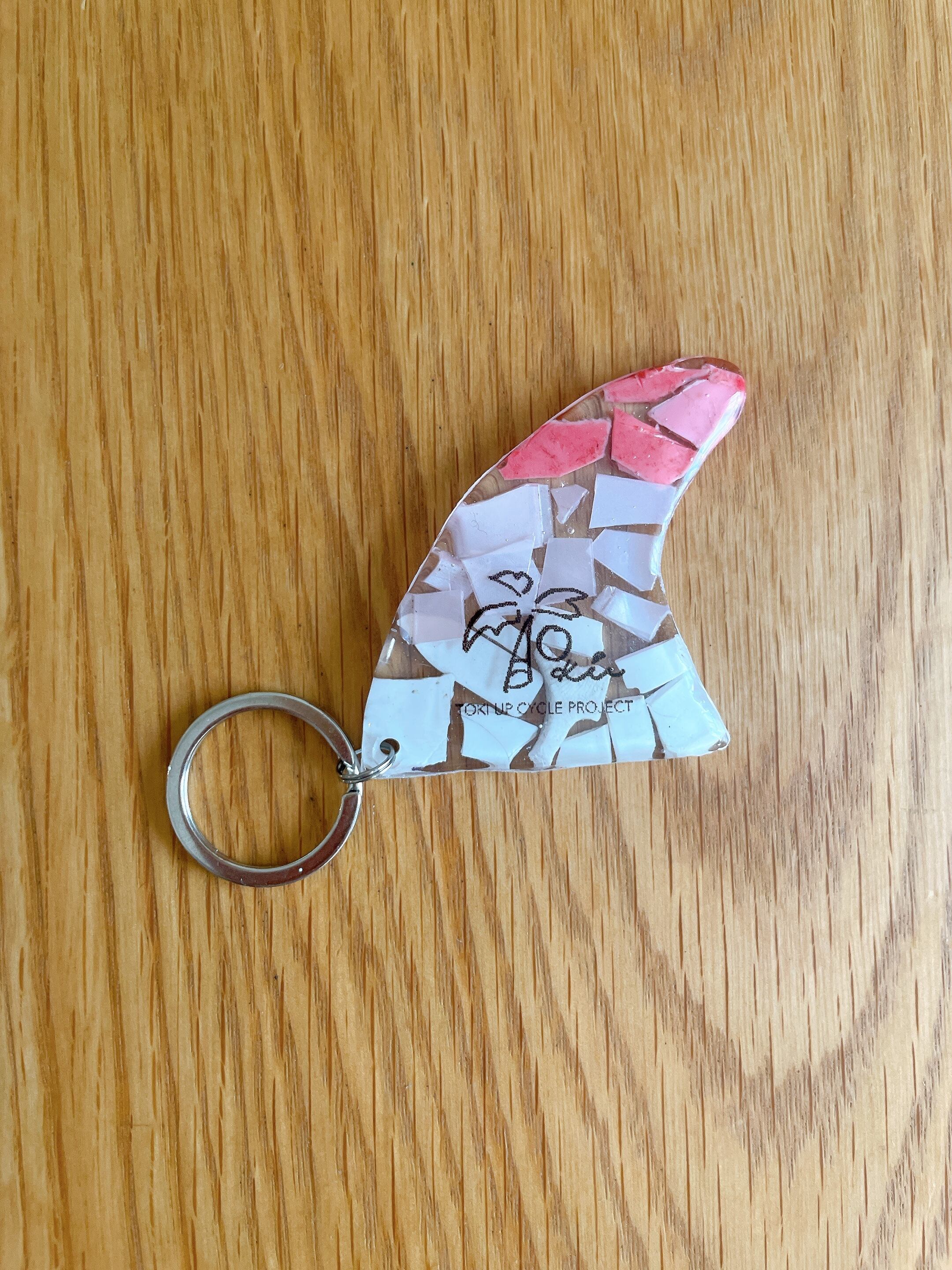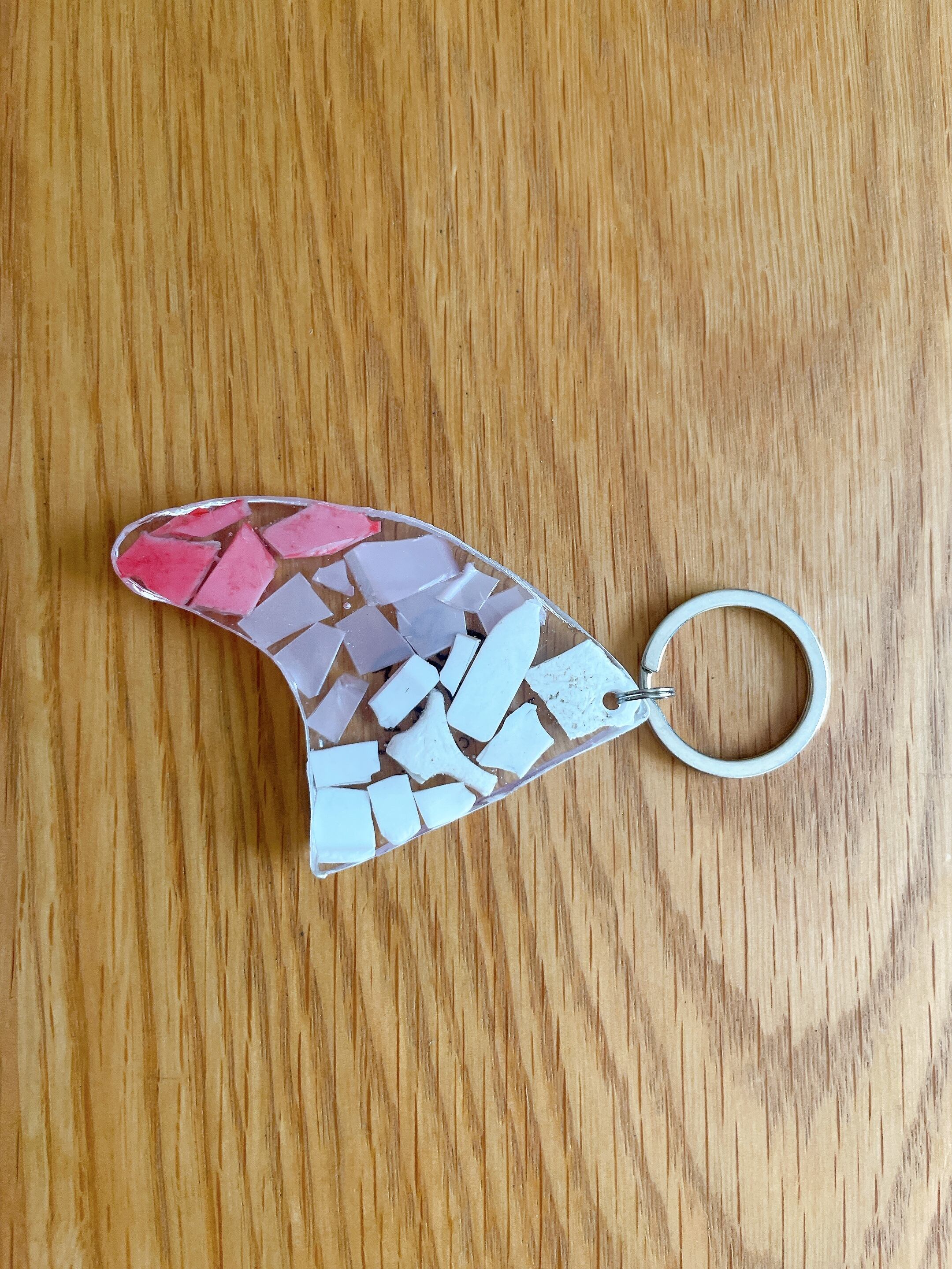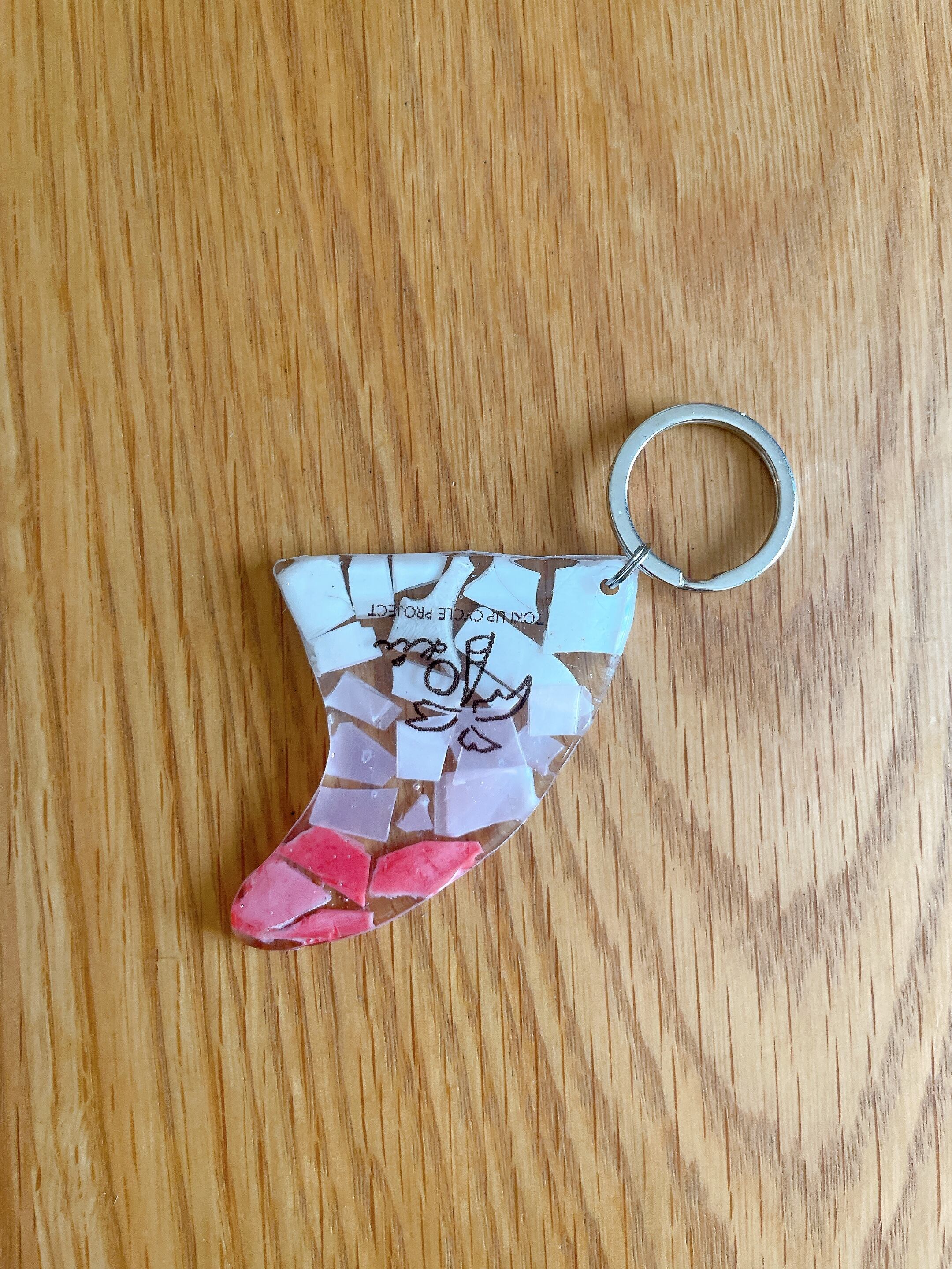 海で拾った海洋プラごみをキーホルダーにアップサイクルしました。