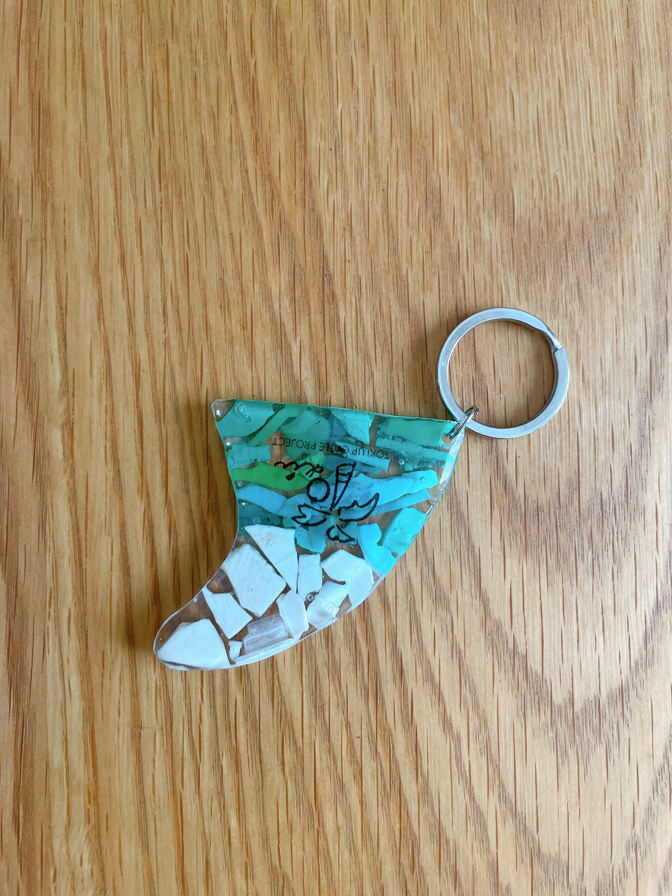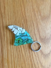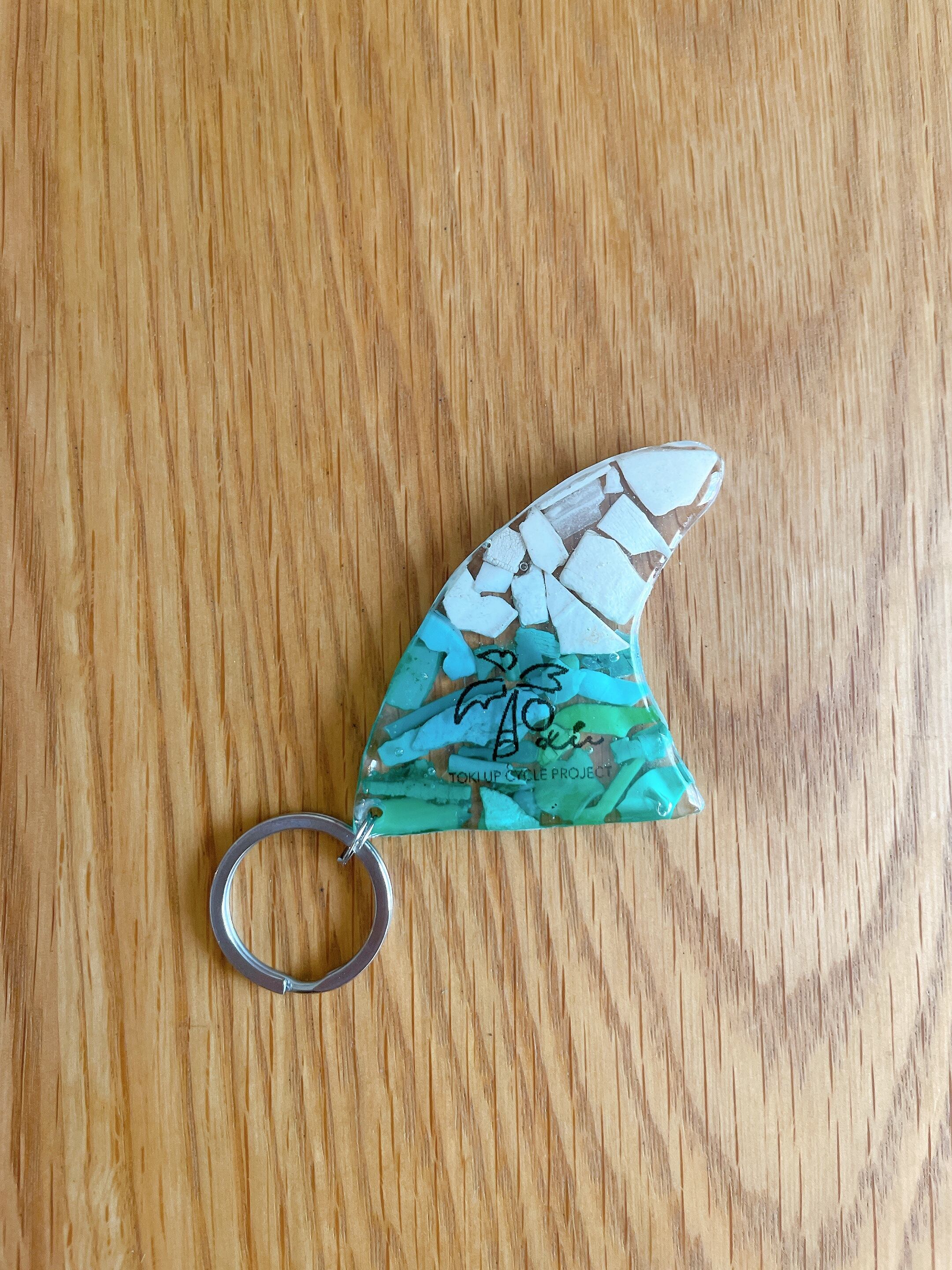 海で拾った海洋プラごみをキーホルダーにアップサイクルしました。