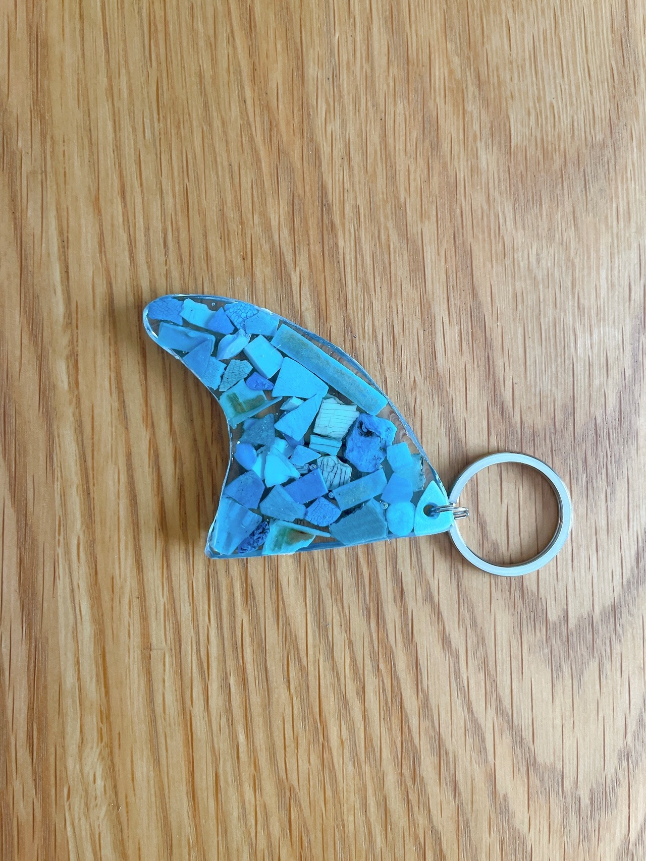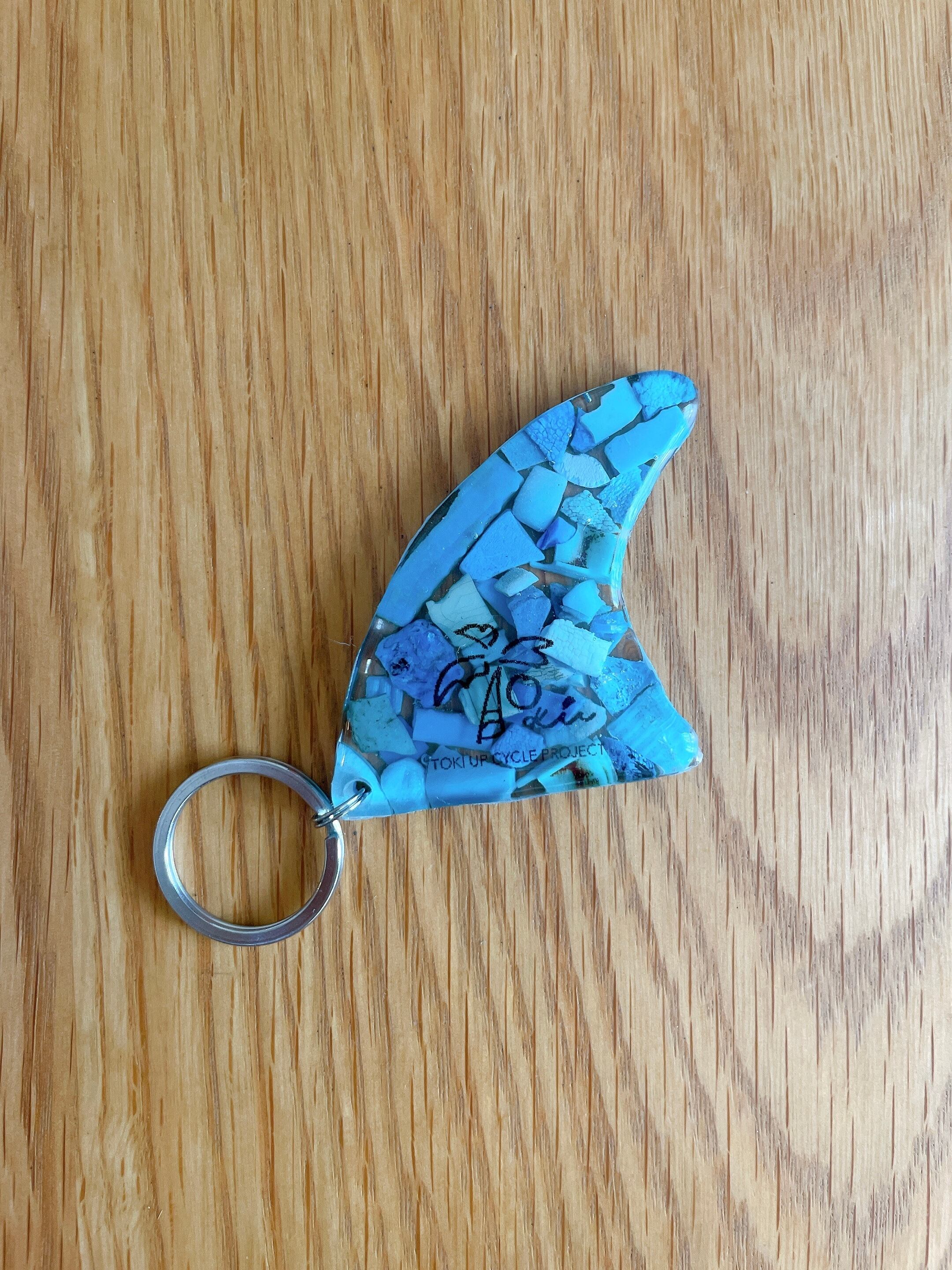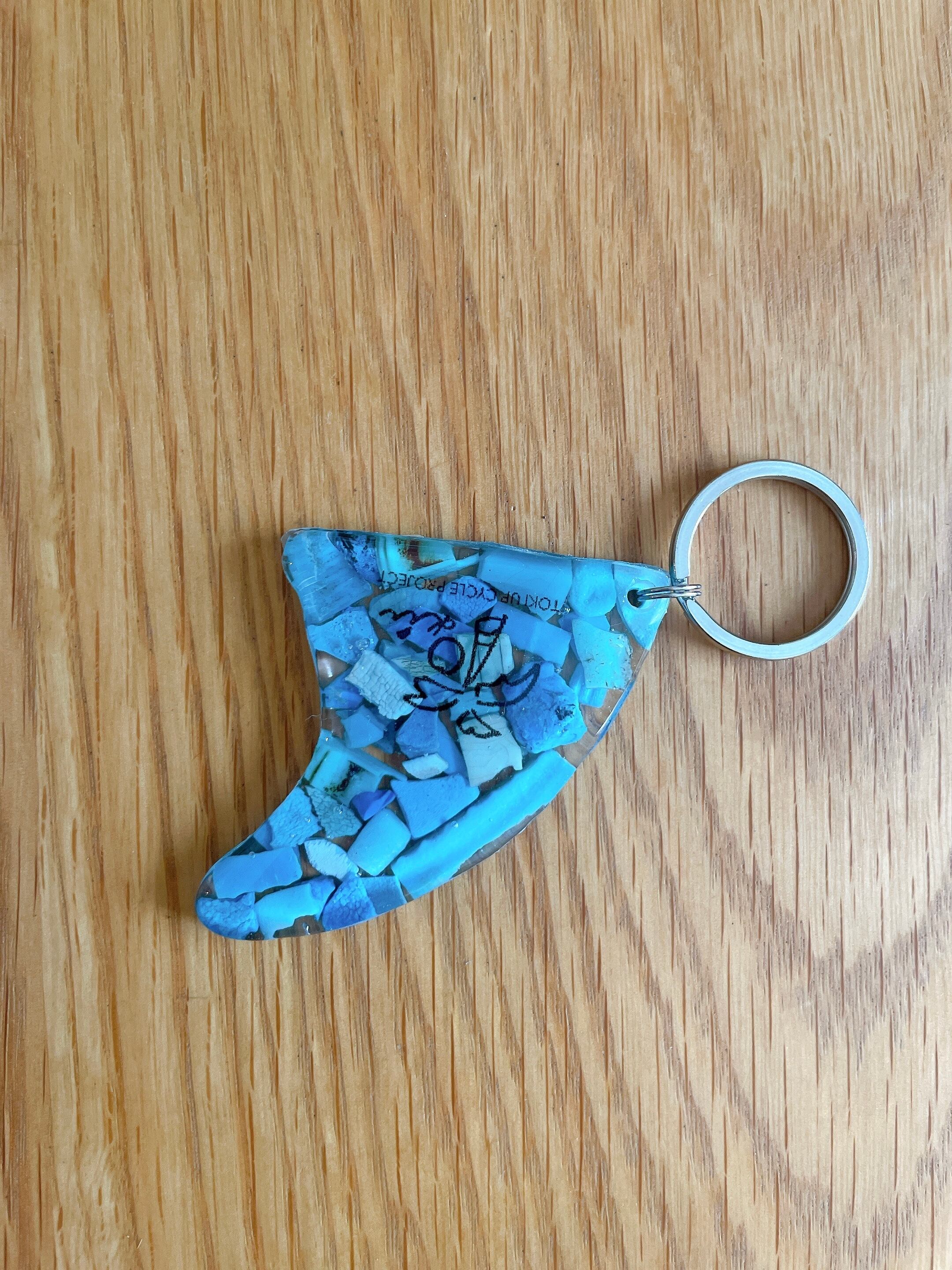 海で拾った海洋プラごみをキーホルダーにアップサイクルしました。