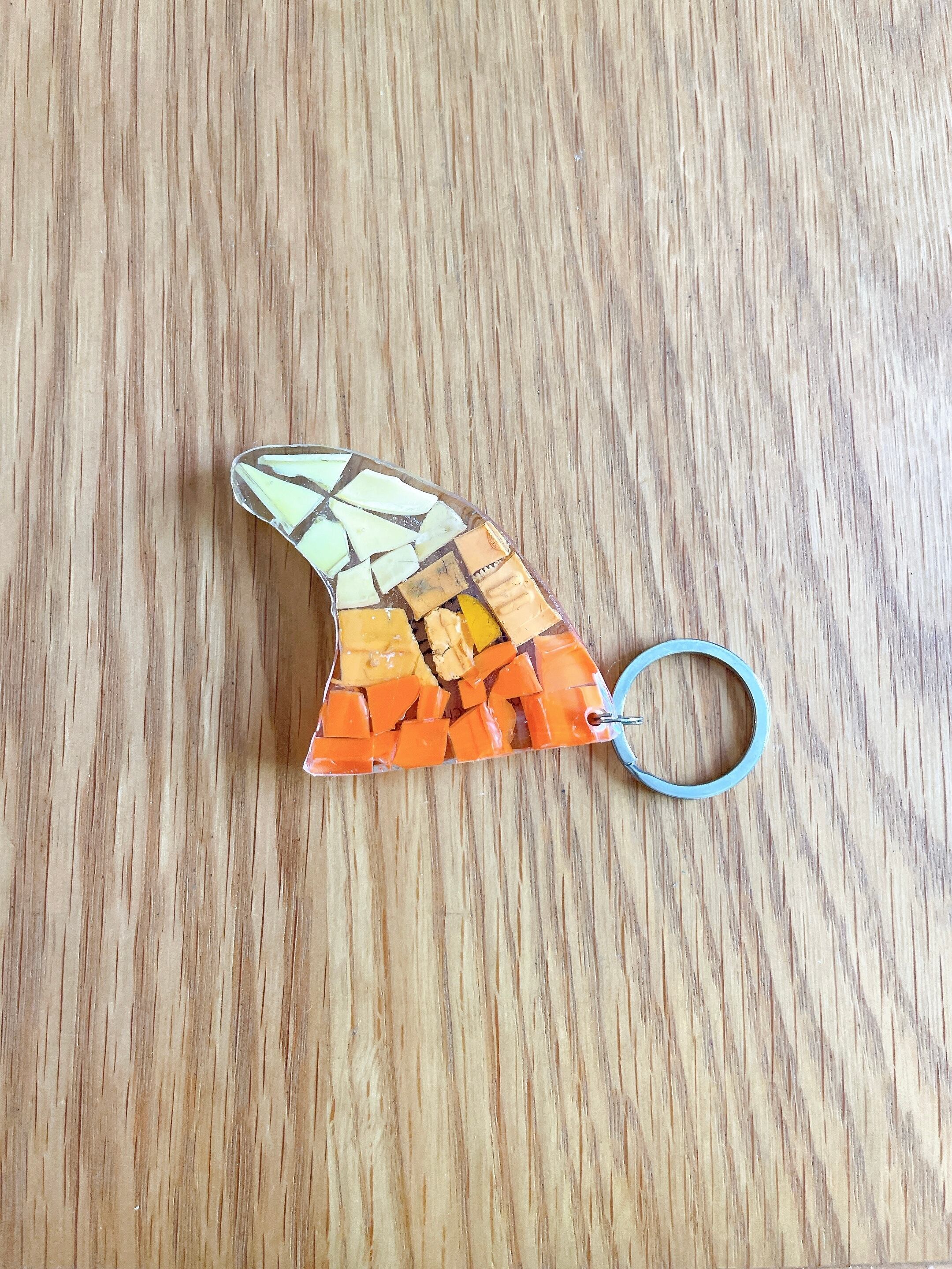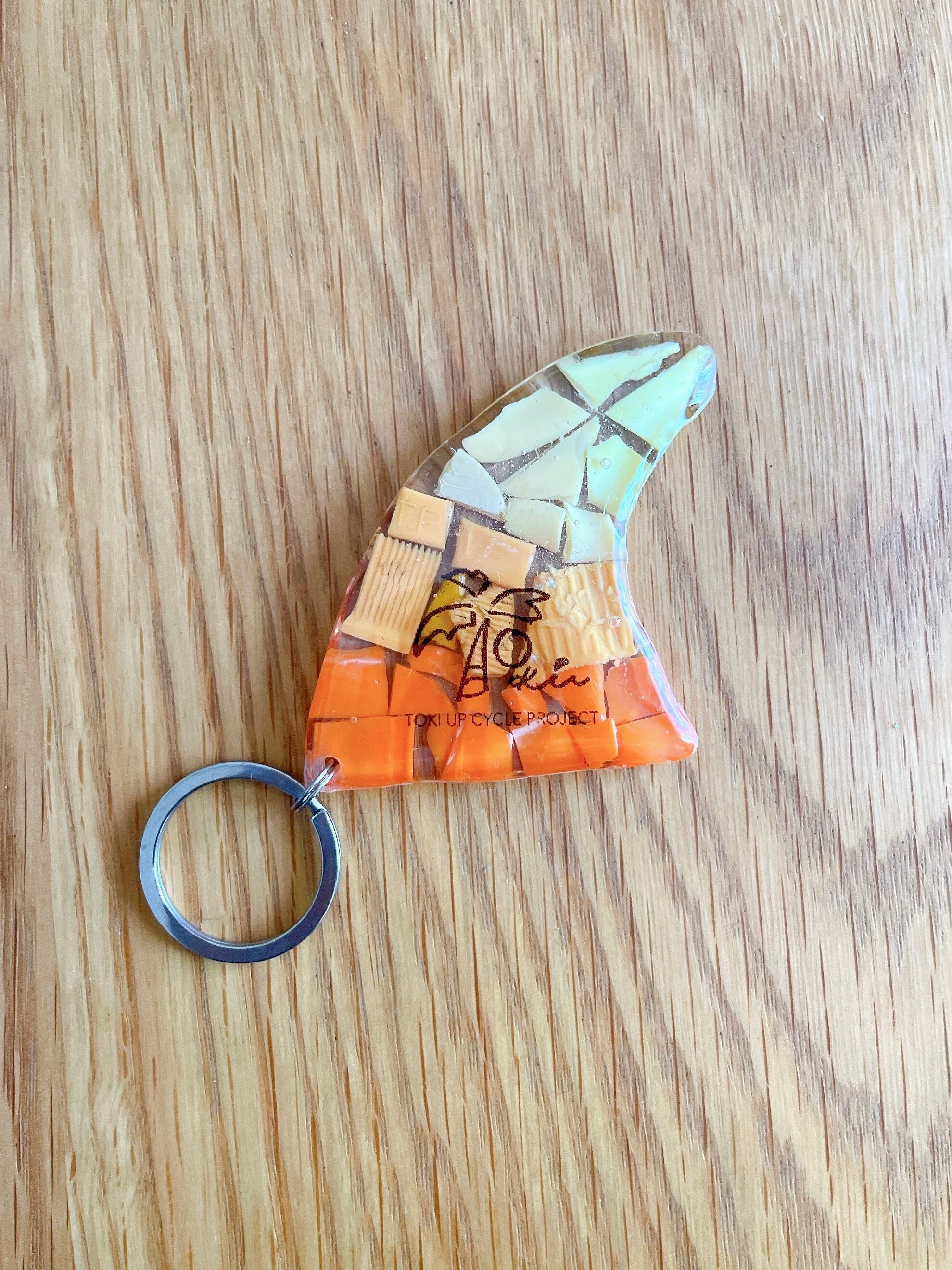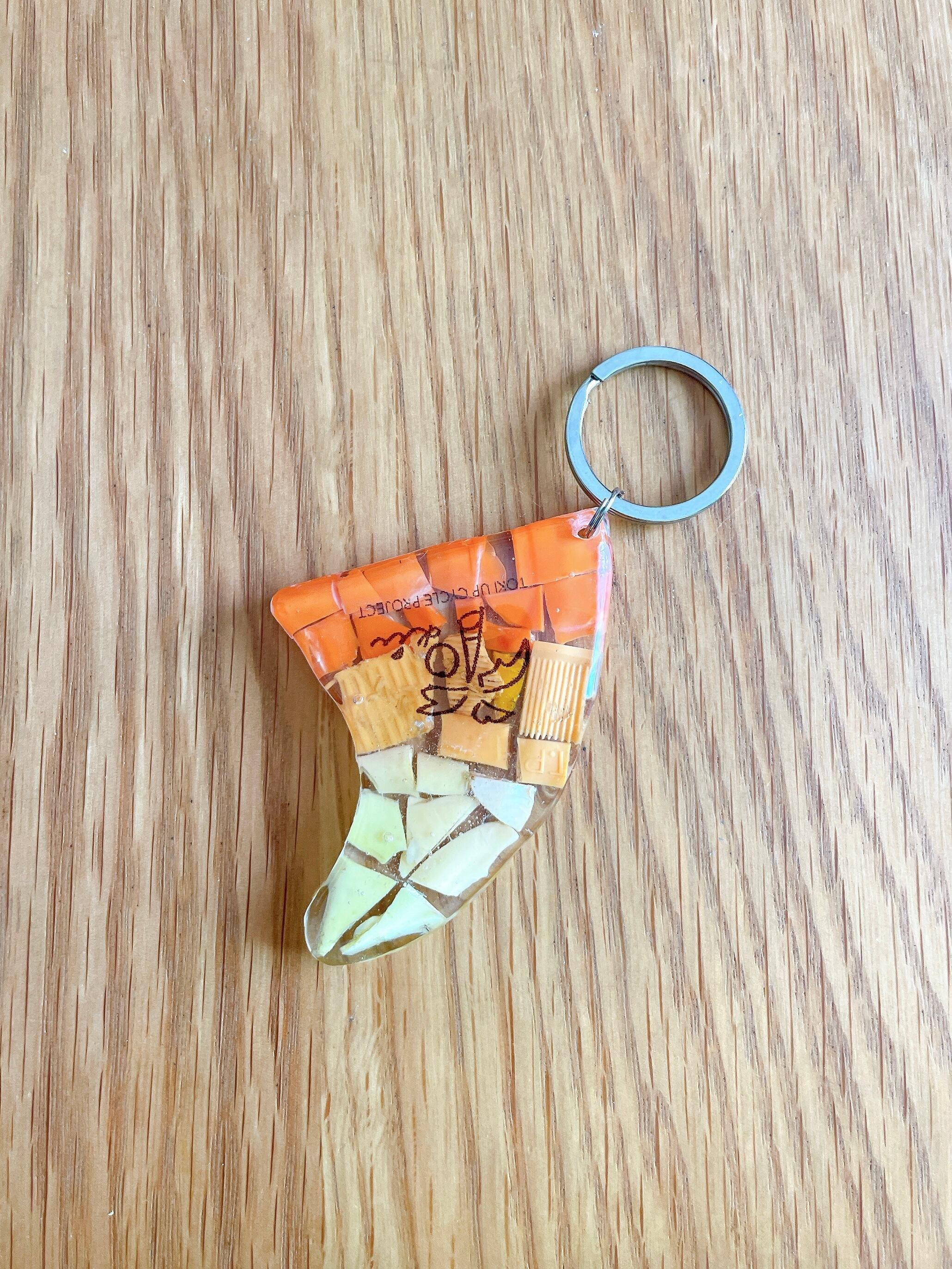 海で拾った海洋プラごみをキーホルダーにアップサイクルしました。